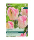 Tulip 'Cabanna' stands out for its gentle colouring and graceful, slightly wild form. As the blooms mature, the green and pink tones deepen and blend beautifully with the creamy base, giving each flower a hand-painted look. The feathery edges add texture, making this tulip a lovely counterpoint to more structured forms. Ideal in pastel planting schemes, it pairs well with soft purples, dusty apricots, and silvery foliage. It also holds its shape well when cut, bringing elegance and a touch of the exotic to spring arrangements.