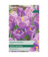 Crocus 'Flower Record' enchants with its regal purple blooms accented by a sunny yellow heart, offering a delightful contrast that catches the eye. Perfect for planting en masse or mixed with paler spring flowers, it brings a lively and uplifting note to early garden scenes. Its vibrant colours also attract bees, supporting early-season pollination.