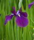 An elegant Japanese iris grown as much for its striking foliage as its flowers. Slender, upright leaves are boldly striped with creamy white and green, creating vertical interest from spring onwards. In early to midsummer, large violet-purple blooms with intricate markings rise above the foliage, delivering a refined and dramatic display.