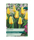 Tulip 'Miskodeed' glows with the mellow warmth of spring sunshine, its golden petals lightly brushed with orange to create a soft, glowing effect. It brings an air of calm cheerfulness to the garden, blending beautifully with creams, soft reds, or blue spring flowers. Its refined shape and balanced tones make it a gentle standout, equally at home in formal beds or more relaxed cottage plantings.